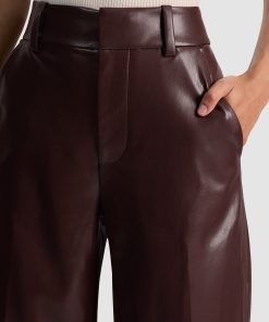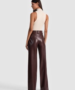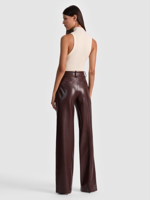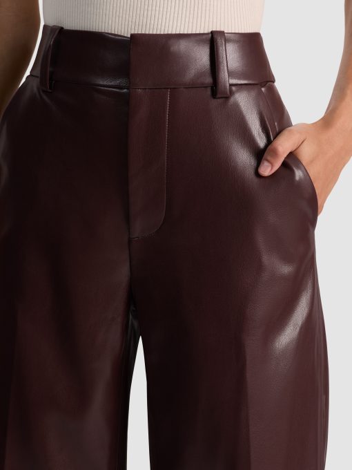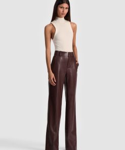 A modern take on classic tailoring. The Alexander is cut from supple vegan leather with a high rise and wide leg for a polished, elongated silhouette. Finished with a clean front, hidden closure, and slim straight fit that moves with you. They mean business – but they also know how to have a good time. Pair with a blazer, or don’t. These brown vegan leather pants turn heads either way.
