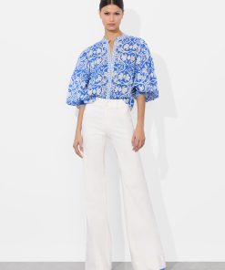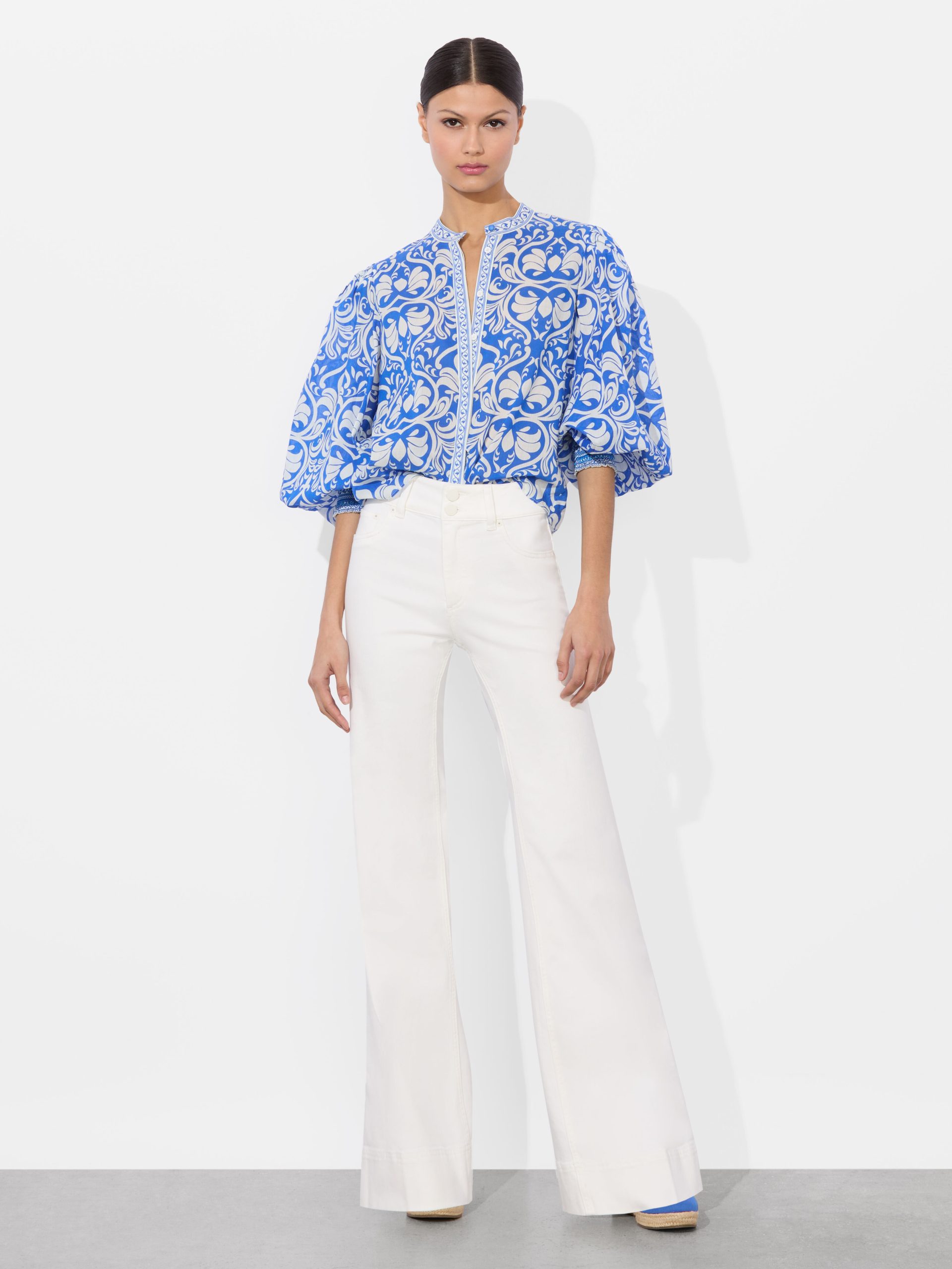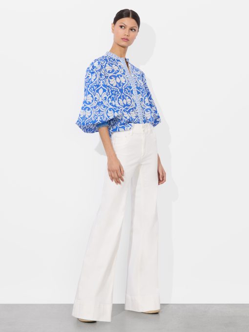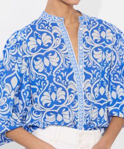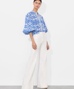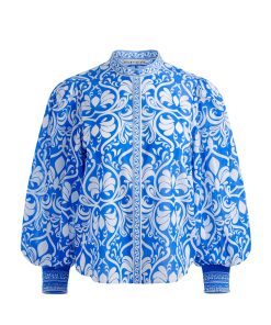 Light as air and effortlessly elegant. This pleated blouse is crafted from printed cotton voile and finished with blouson sleeves for a soft, romantic shape. A hidden button placket keeps the look clean and refined, while the breathable cotton makes it ideal for warm days and layered looks alike. A timeless staple with a subtly statement feel.