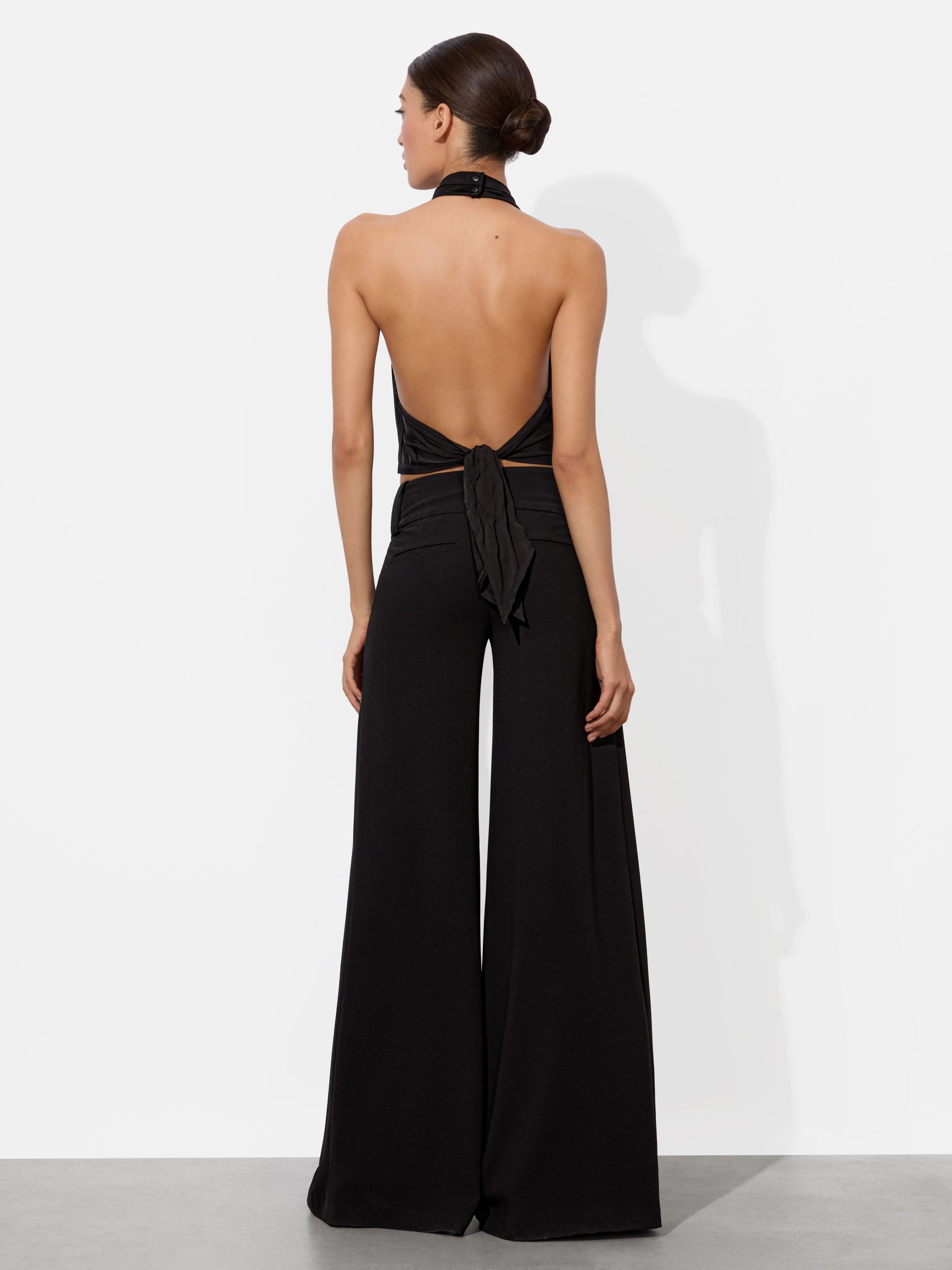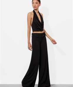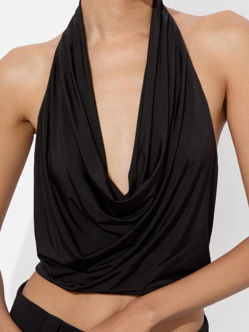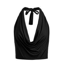Your favorite bodysuit, reimagined as the ultimate going-out top. The Ayanna tie neck halter top takes everything you loved about the original-plunging cowl neckline, silky stretch jersey-and crops it for warm nights and cooler company. An open back adds drama, while the slinky fit hugs in all the right places. Throw it on with high-waisted pants, a tan, and very little else.