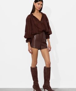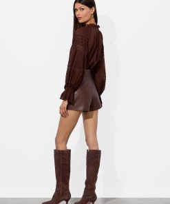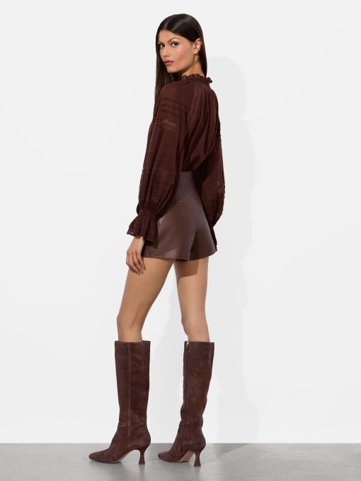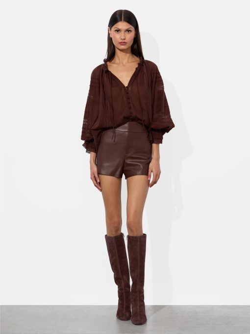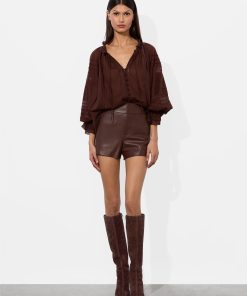Tough meets tailored. Our Cady short is crafted from supple lamb leather in a rich shade of mocha and cut with a clean waistband for a sleek, sculpted silhouette. The leg-baring fit makes them a natural choice for warmer nights, but don’t be fooled-they layer just as well with oversized knits come fall. Just add boots, flats, or literally anything else. These are that good.