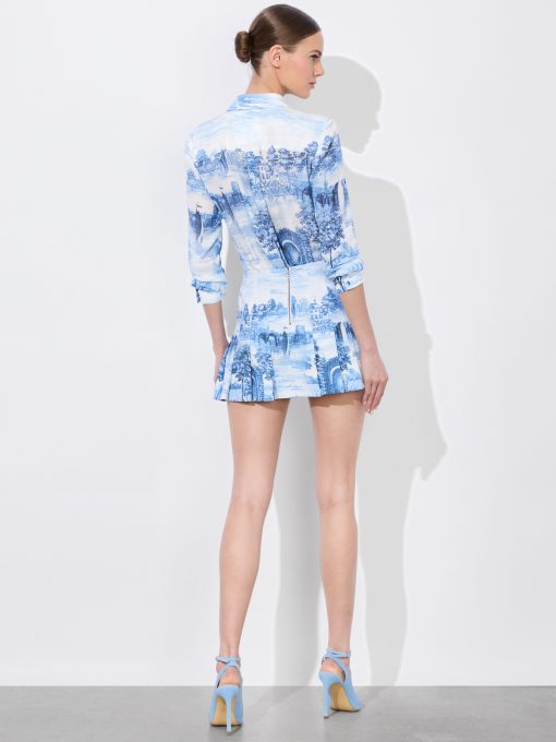 Our bestselling Carter is back, now printed in an exquisite toile. This blue pleated mini skirt is made from a recycled lightweight crepe and tailored in a girly A-line shape. Crisp pleats create beautiful movement as you walk. An effortless throw-on-and-go style, we love wearing this with everything from knitwear to crisp button-downs to t-shirts.