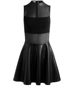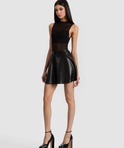 A classic A+O silhouette, reimagined. The Chara dress features a sculpted mesh bodice with a bandeau lining and a flared vegan leather skirt that brings just the right amount of edge. The drop waist gives it that flirty, ballet-inspired shape-equal parts polished and playful.