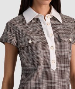 Your new desk-to-dinner hero. The Darby collared t-shirt dress is sleek, polished, and super versatile-featuring a crisp white collar, gold-button placket, tailored silhouette, and a print that adds just the right amount of personality to your 9-to-5. Wear it solo now and layer under jackets when the weather shifts. She’s super cute with boots!