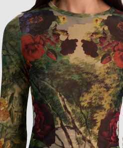 Our cult-favorite Delaina mesh top is back, now in a forbidden forest print.Ultra-soft with a bit of stretch, it’s cut into a form-fitting and body-sculpting silhouette. Lightweight and breathable, it’s perfect for everyday wear.