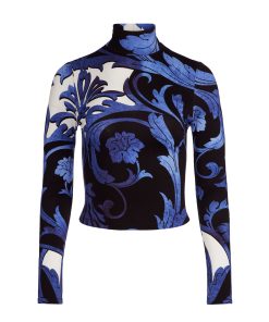 A statement piece that’s both bold and polished. The Delaina turtleneck crop top features our striking largescale paisley print in an ultra-soft viscose body. Wear it with high-waisted trousers and boots for a chic everyday look.