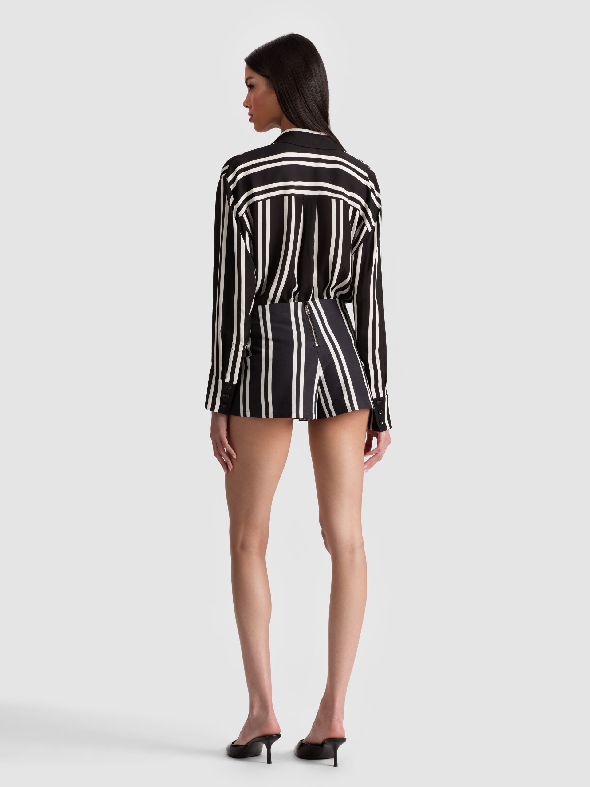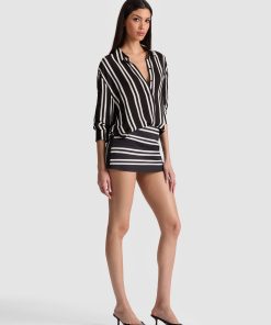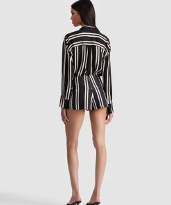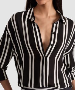 alice + olivia Women’s Dimitra Oversized Button Down | Paddleboard Stripe Black & Ecru