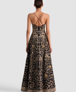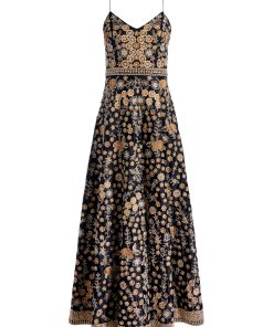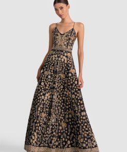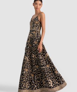 A gown designed to stop traffic. It’s crafted in duchess satin with a plunging deep V neckline, delicate crisscross straps, and a sweeping A-line silhouette that flatters from every angle. Intricate embellishments glisten across the tiers, giving it a subtle shimmer with every step. Elegant, dramatic, and unapologetically glamorous- this is the one for all your big fall events.