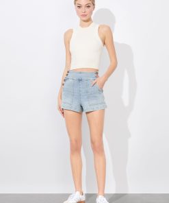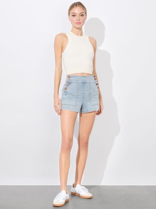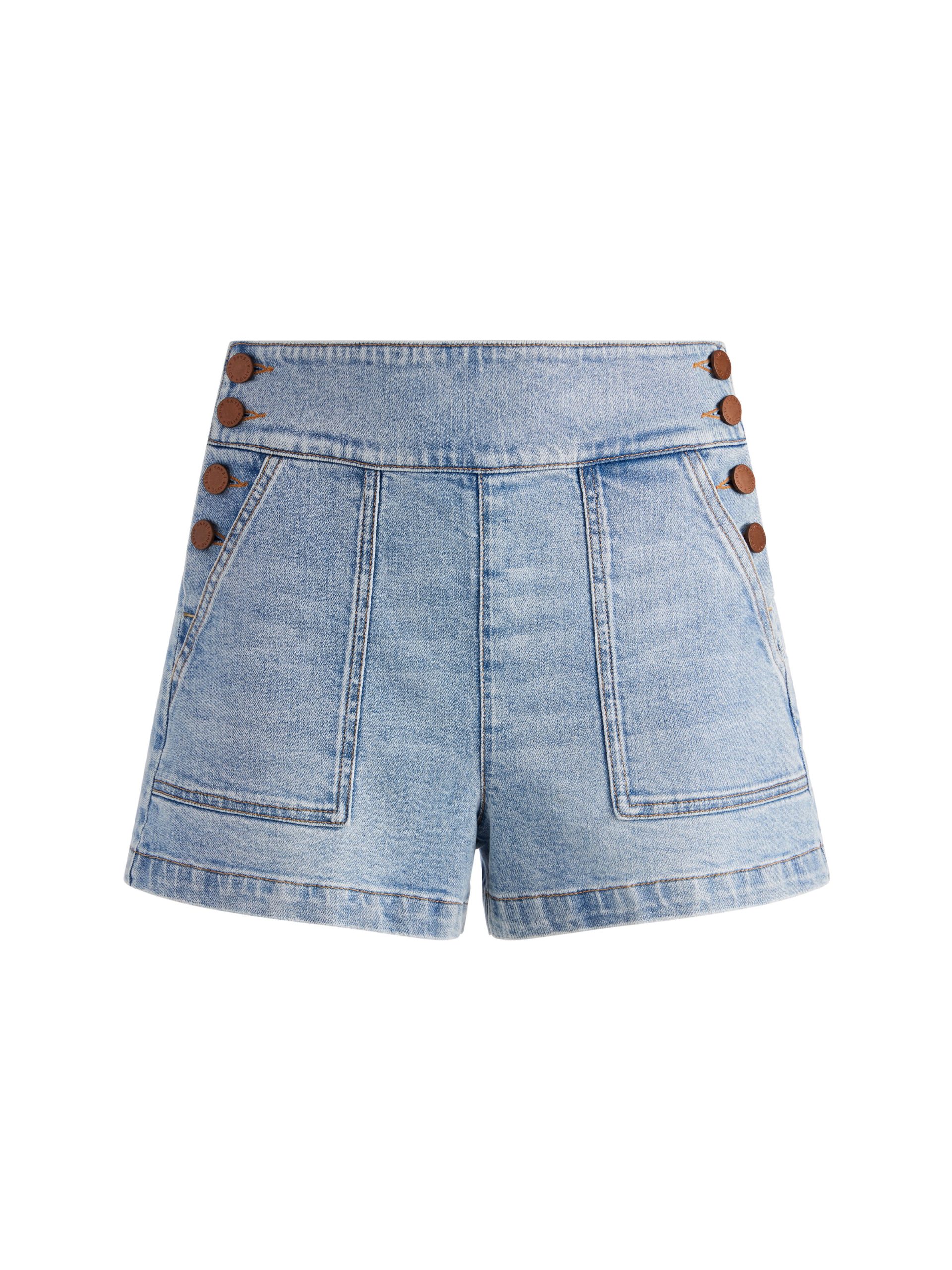 ALICE + OLIVIA JEANS is a capsule collection from Alice + Olivia that was born and raised in Los Angeles and made to dress your inner rockstar. This cool high rise denim minishort has serious throwback vibes and will do some pretty incredible things to your legs. Bonus: Those exposed side button closures.