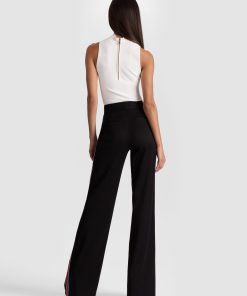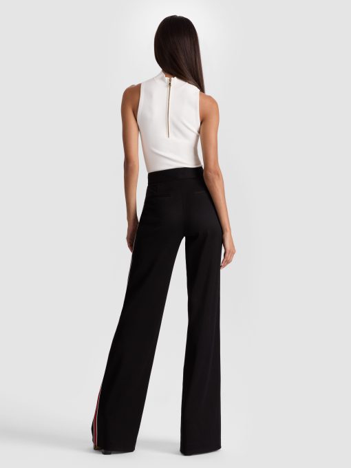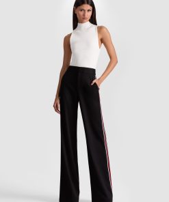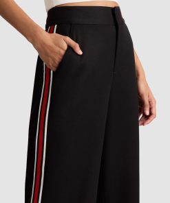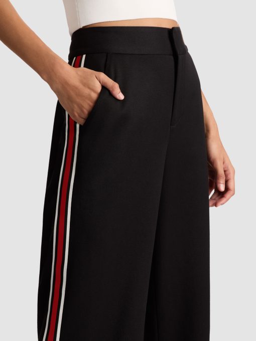 Our classic Dylan pant returns, now with a bold side stripe for an instant update. Designed with a relaxed wide leg and a flattering high rise, it blends comfort and style effortlessly. Crafted from smooth twill sateen suiting, it features a hidden front hook and zipper closure for a clean finish. The perfect pant to elevate any look with subtle sporty flair.