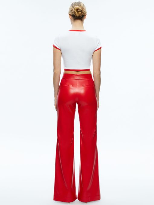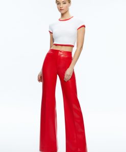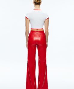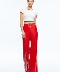 This vegan leather trouser is our dream pant – ideal for taking your pants game to a new level. With an of-the-moment bright ruby shade, wide leg, and high waist, it’s incredibly flattering.