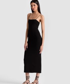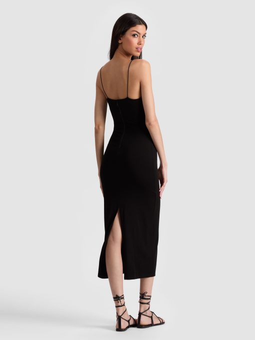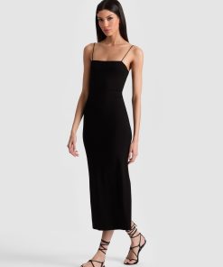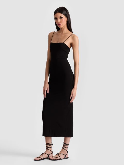 The black dress you’ll wear for years. Fifi is a bodycon midi with slim spaghetti straps, a sculpted fit, and a back slit for movement. Designed in our signature stretch wool jersey, it’s sleek, sexy, and made to work hard in your wardrobe. Think of it as your secret weapon for when you don’t know what to wear-but want to look incredible.