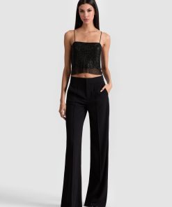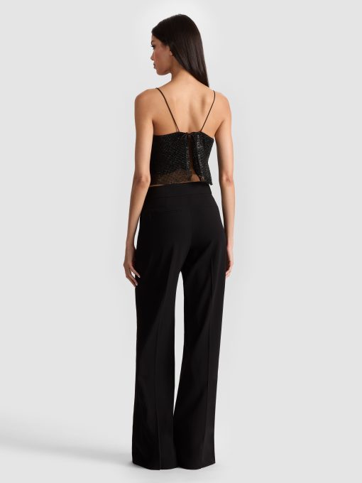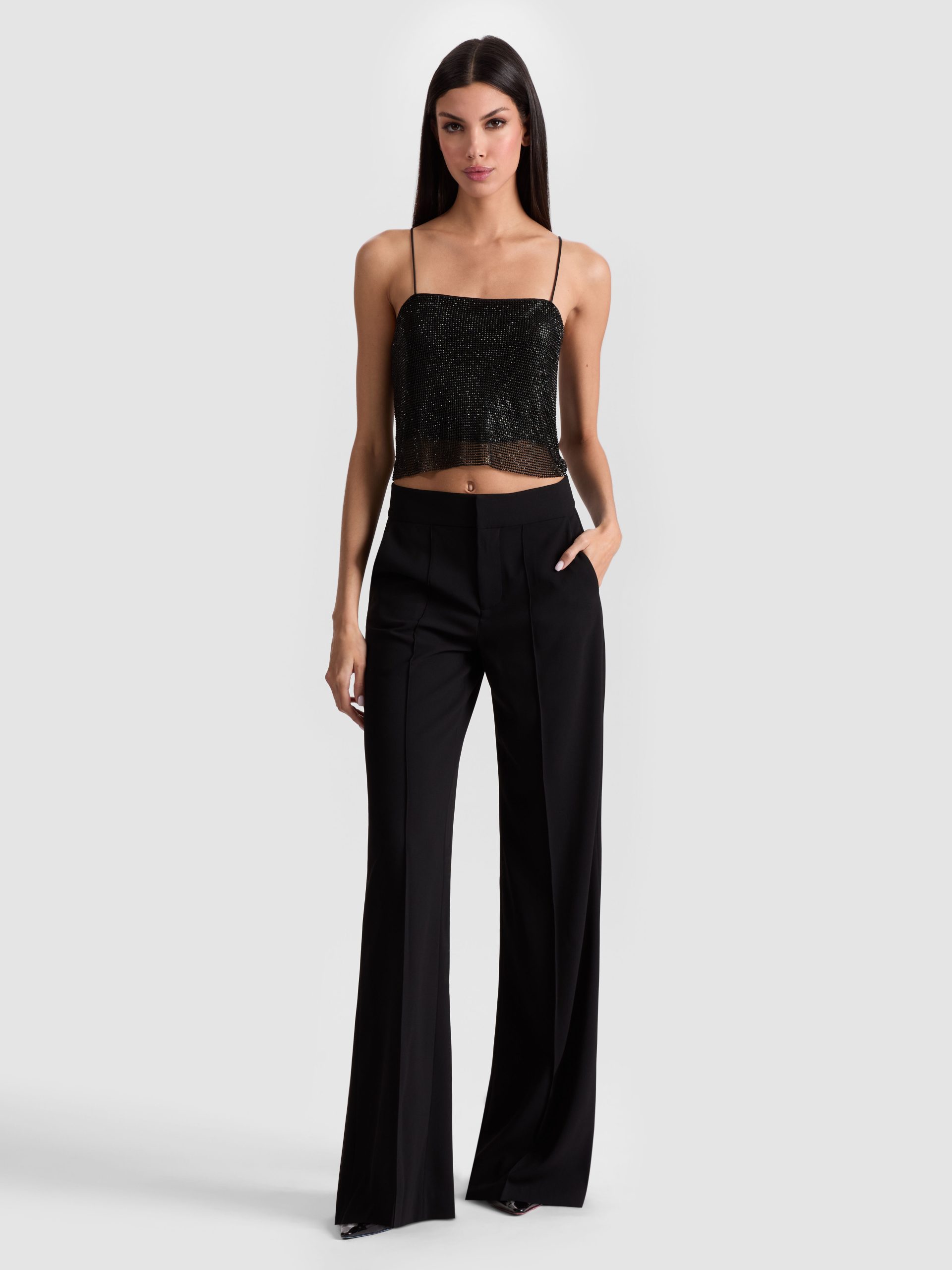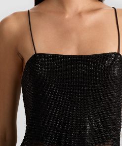 Night-out armor. Our Grazi black tank is made from glimmering black crystal chainmail with a fluid drape that moves with you-and catches the light from every angle. A back tie closure adds a custom fit, while the attached lining keeps it comfortable enough to dance ‘til dawn. Paired with denim or layered under a blazer, it’s a total scene-stealer. Just add heels and let the top do the talking.