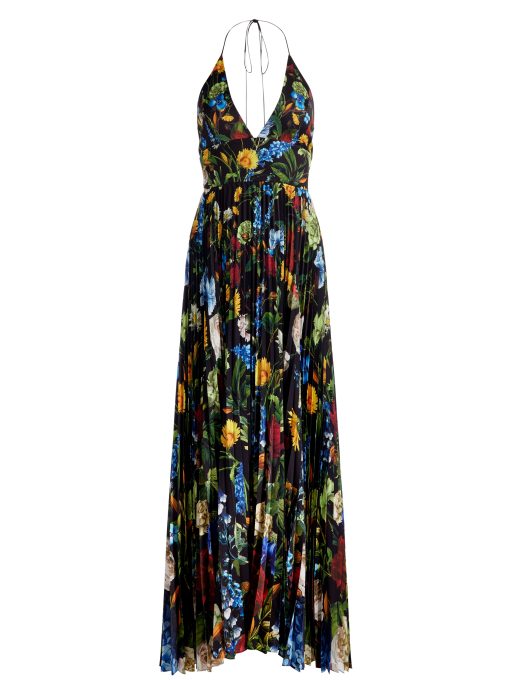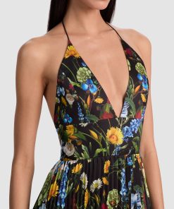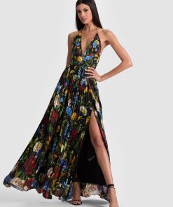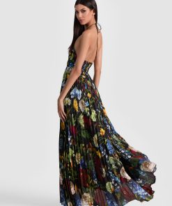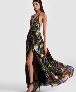 All eyes on you. Our Hannah dress stuns with its deep V neckline, thigh-high slit, and flowing pleated skirt that was made to move. Rendered in lightweight printed satin with a stunning sheen, it’s equal parts sultry and elegant-ideal for weddings, galas or wherever the night takes you. Slip it on and watch heads turn.