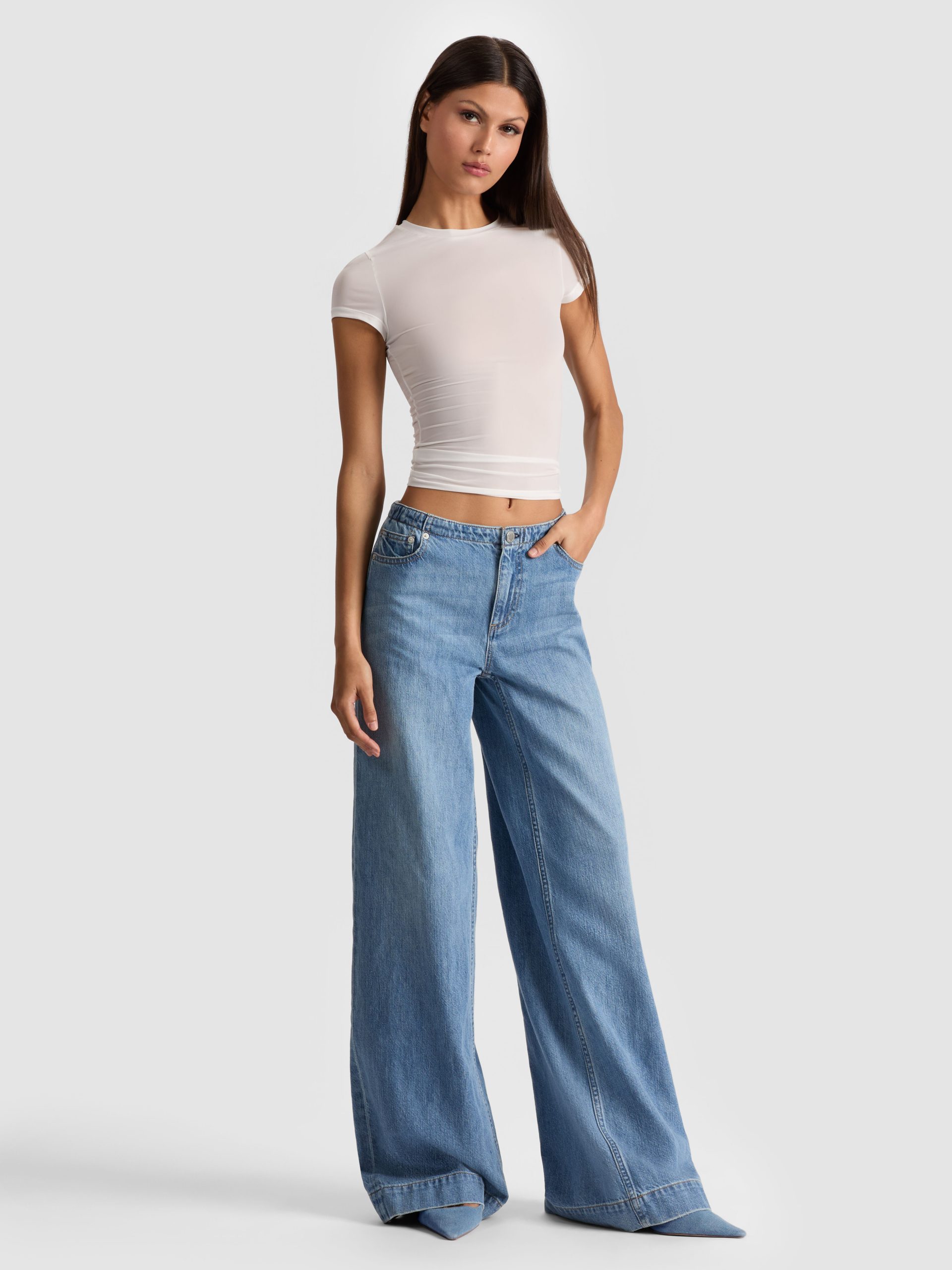 Meet the layering essential that’s anything but basic. The Hottie tee is made from a super-soft, semi-sheer viscose jersey with a sleek, second-skin fit that’s ultra-flattering. Short cap sleeves show off those arms, while the perfect length and shrunken fit keep things cool. Wear it solo with a statement bra or layer it under blazers, dresses, or sheer knits-this one’s heavy in the rotation.