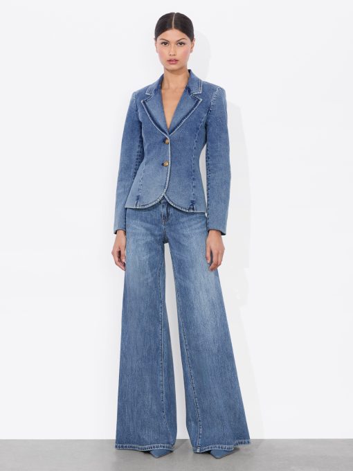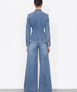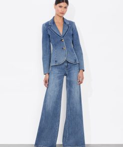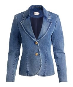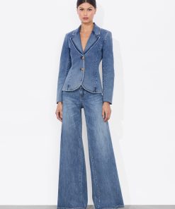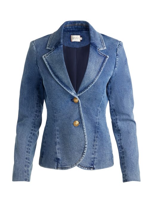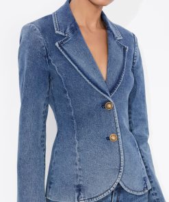 Reminiscent of the iconic bar jacket, our Iana fitted denim blazer has a sculptural, waist-defining shape. Molded curves are tailored from a rich cotton denim, giving you an hourglass shape. Sophisticated and timeless, wear it with cigarette pants and nothing underneath for an ultra-chic night-out look.