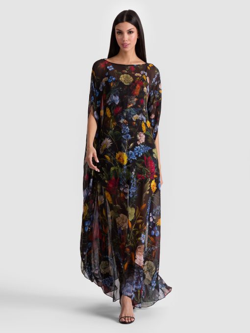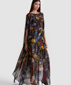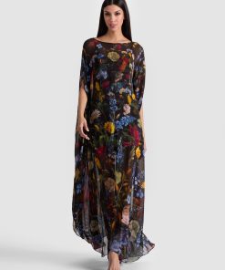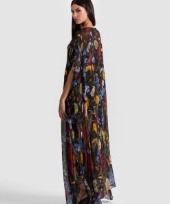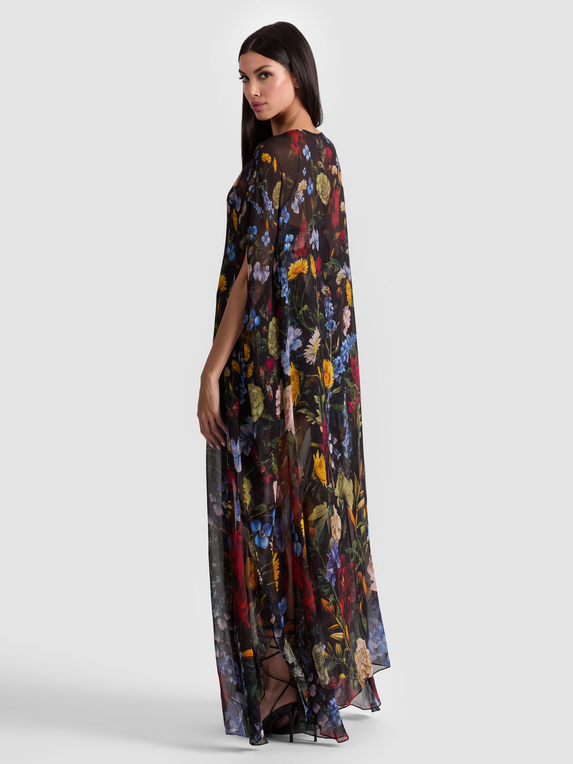 Effortless glamour, with a touch of the ethereal. The Linn dress is crafted in floaty chiffon with sheer cape sleeves that trail behind you as you move. Its relaxed shift silhouette is easy yet elegant, while the moody, abstract print adds just enough drama. A built-in cami lining keeps it wearable and comfortable all night long. Add bold earrings and let the dress do the rest.