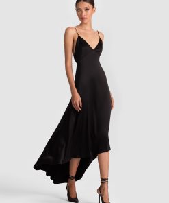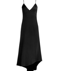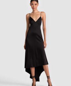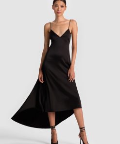 Where sleek minimalism meets high-impact detail. The Luciana midi dress is crafted from glossy stretch viscose, featuring a deep V neckline, asymmetrical hem, and flattering open-back. Designed to catch the light and flatter the figure, it’s the kind of piece that owns the room without saying a word.