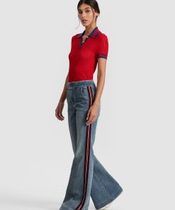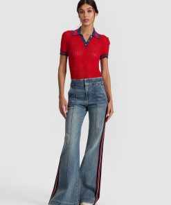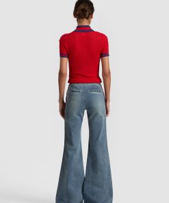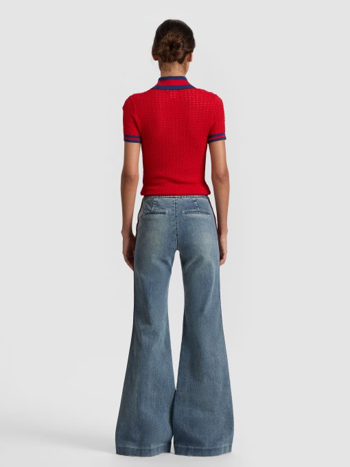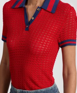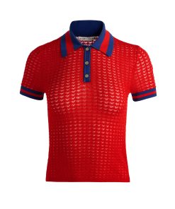 Inspired by vintage prep, designed to stand out. The Martha is a knit polo in a soft pointelle stitch with striped tipping and a cropped, shrunken fit. Button the collar for full throwback effect or leave it open and breezy. Either way, it’s giving upscale varsity.