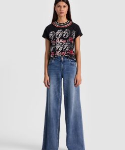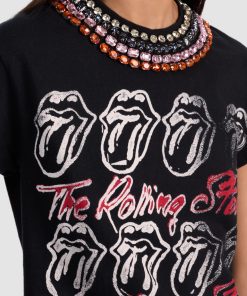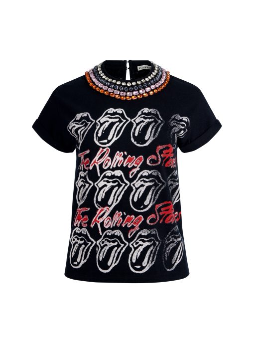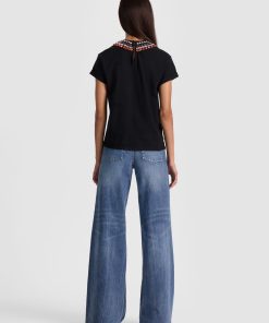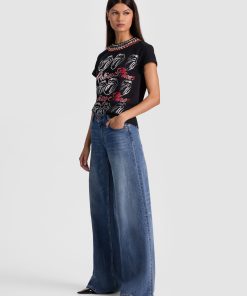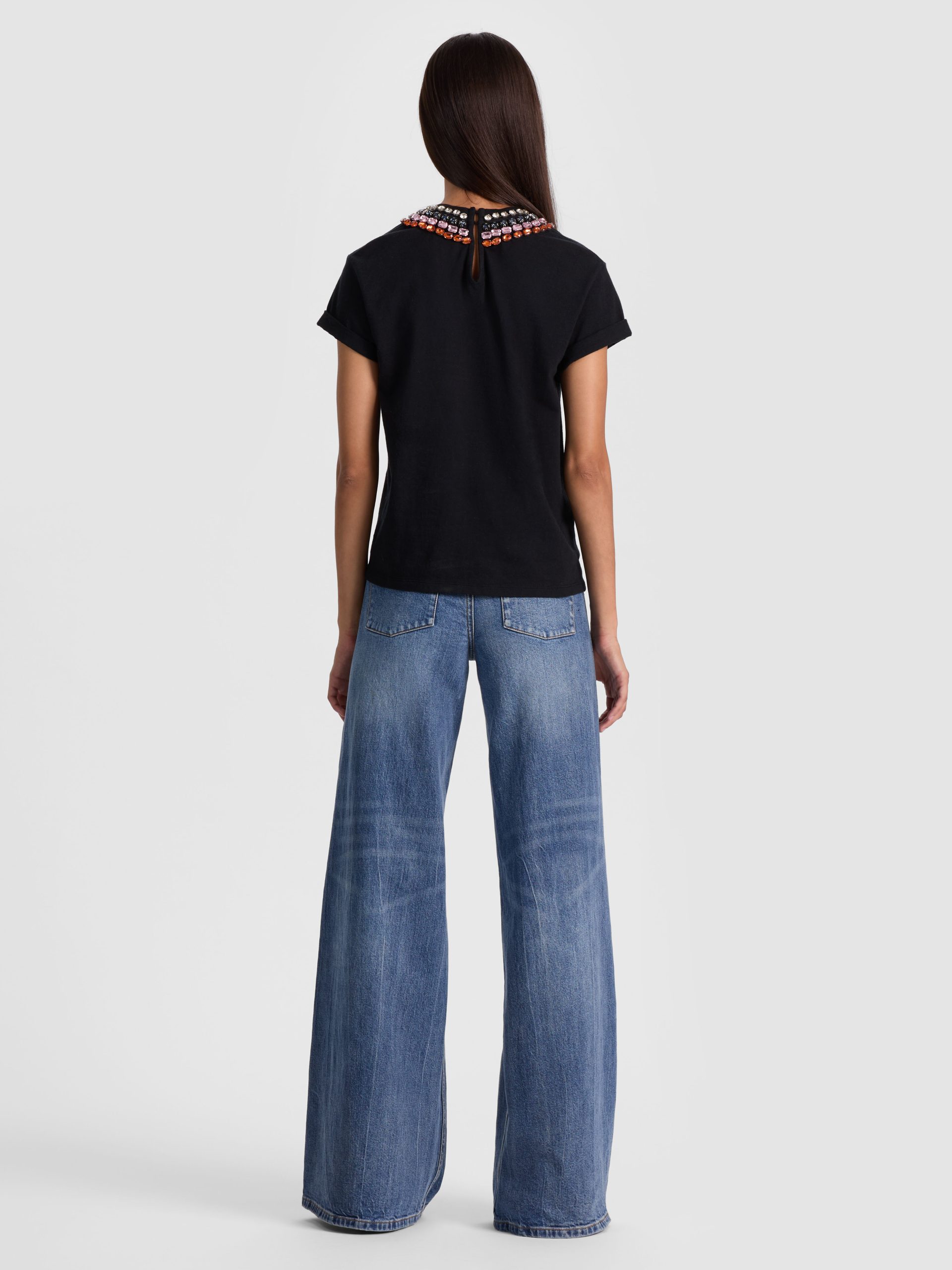 alice + olivia Women’s Maxie Embellished Band Tee | Black & Multi