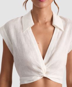 A bestseller reborn. Inspired by our fan-favorite Mila dress, this top version is made from lightweight linen with a deep V-neckline, twist front, and gently cinched back. It’s feminine without being fussy and looks just as good with jeans as it does under a blazer.