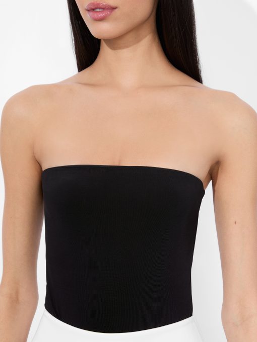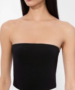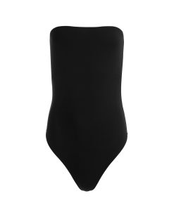 Soft, sleek, and made to turn heads-this strapless black bodysuit is crafted from a smooth knit jersey that feels buttery on the skin while gently snatching your shape. A thong back and snap closures keep it as effortless to wear as it is to style, making it your new go-to for going out.