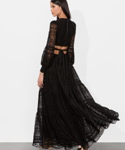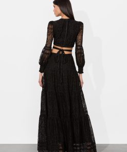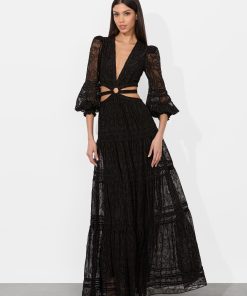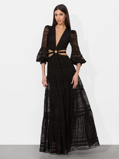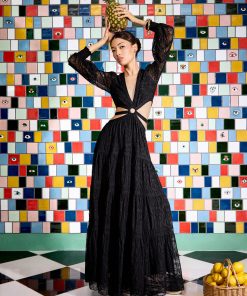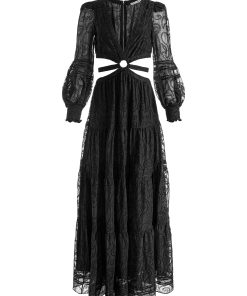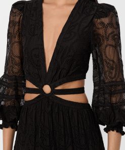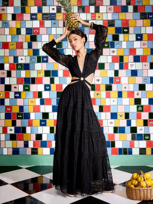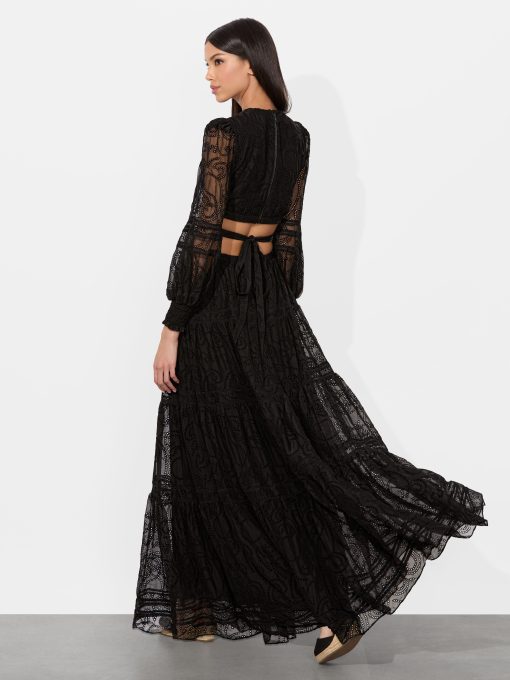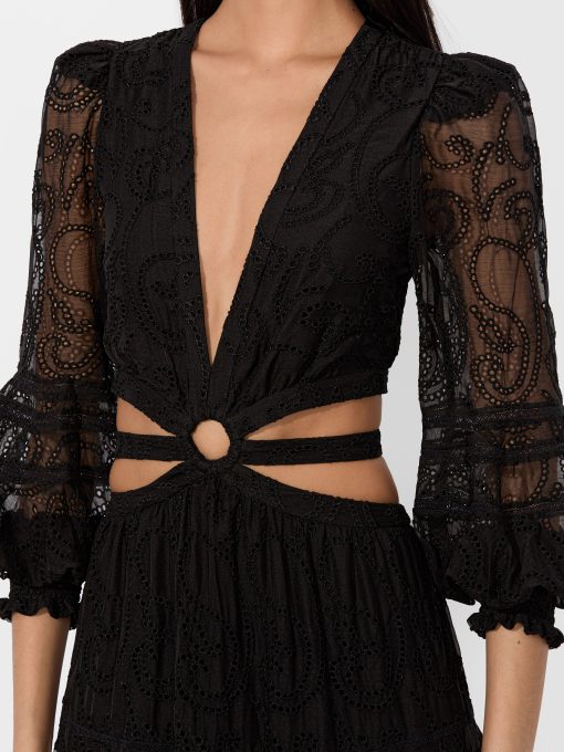 Our bestselling Patrica maxi is back, this time in classic black. This fan favorite returns with all the drama you loved: sheer blouson sleeves, a deep V neckline, and a perfectly placed waist cutout that flatters at every angle. Now in versatile black, it’s lined through the body for coverage but keeps things breezy with its sheer sleeves and embroidered paisley eyelet detailing. Consider this your your go-to for moonlit plans and moments that call for a little mystery.