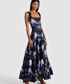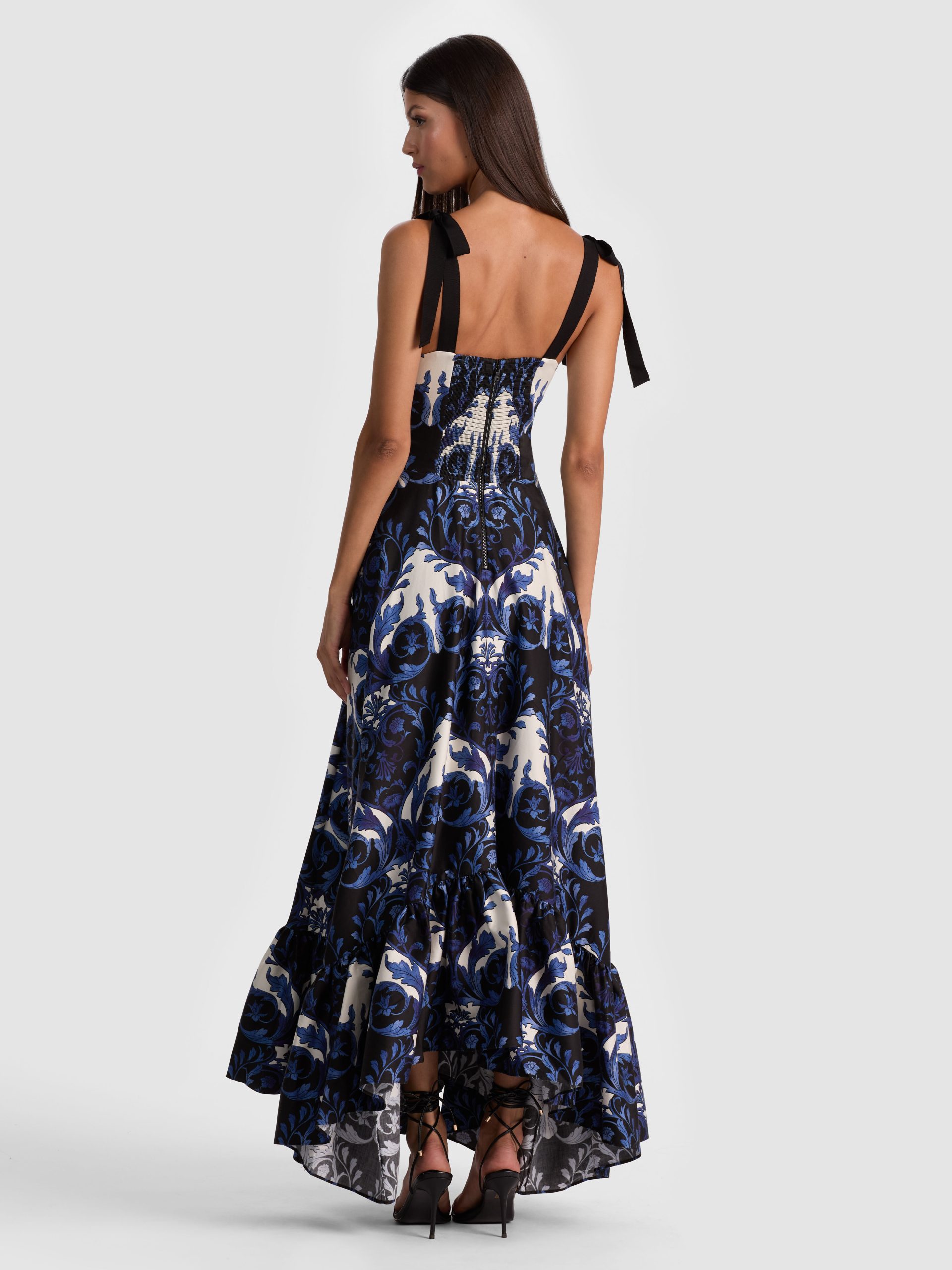 The most gorgeous print on the dreamiest silhouette – our Rosalee tie shoulder maxi dress is made for a princess. Cut from breezy cotton poplin, its fitted bustier bodice plumes out into a super feminine skirt with a fluttery hem. It’s finished with adjustable ribbon straps and smocking in the back to conform to your shape. A true stunner that you’ll feel gorgeous and glamorous in. Accessorize it with a spritz and a sunset.