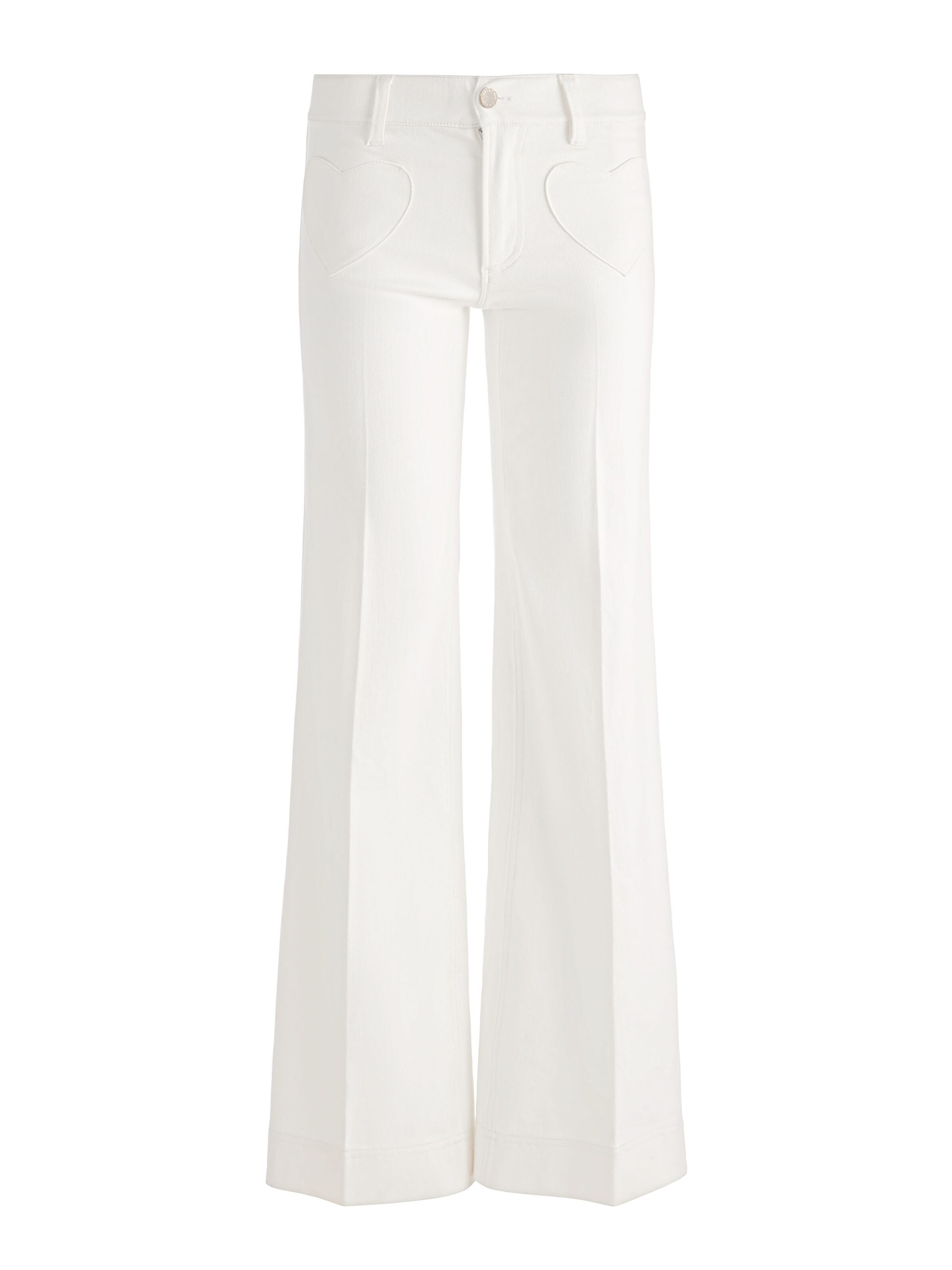 Introducing: The Slay Jean. Made for days when you need to get it all done-and look good doing it. With a low rise, wide leg, and adorable heart embroidered patches, the Slay Jean is as comfortable as it is commanding. Slip them on, take on your to-do list, and you’ll look totally SLAY.