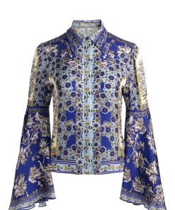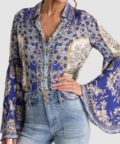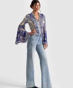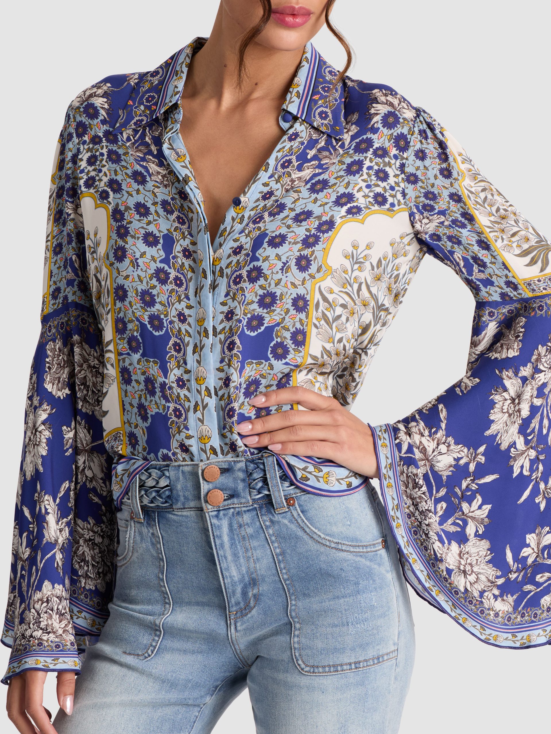 Our signature Willa, with a twist. This version features a clean hidden placket, collared neckline, and wide bell sleeves for a more sculptural take on the classic button-down. Cut in our forevermore floral print, it feels like a wardrobe staple dressed up for the season.
